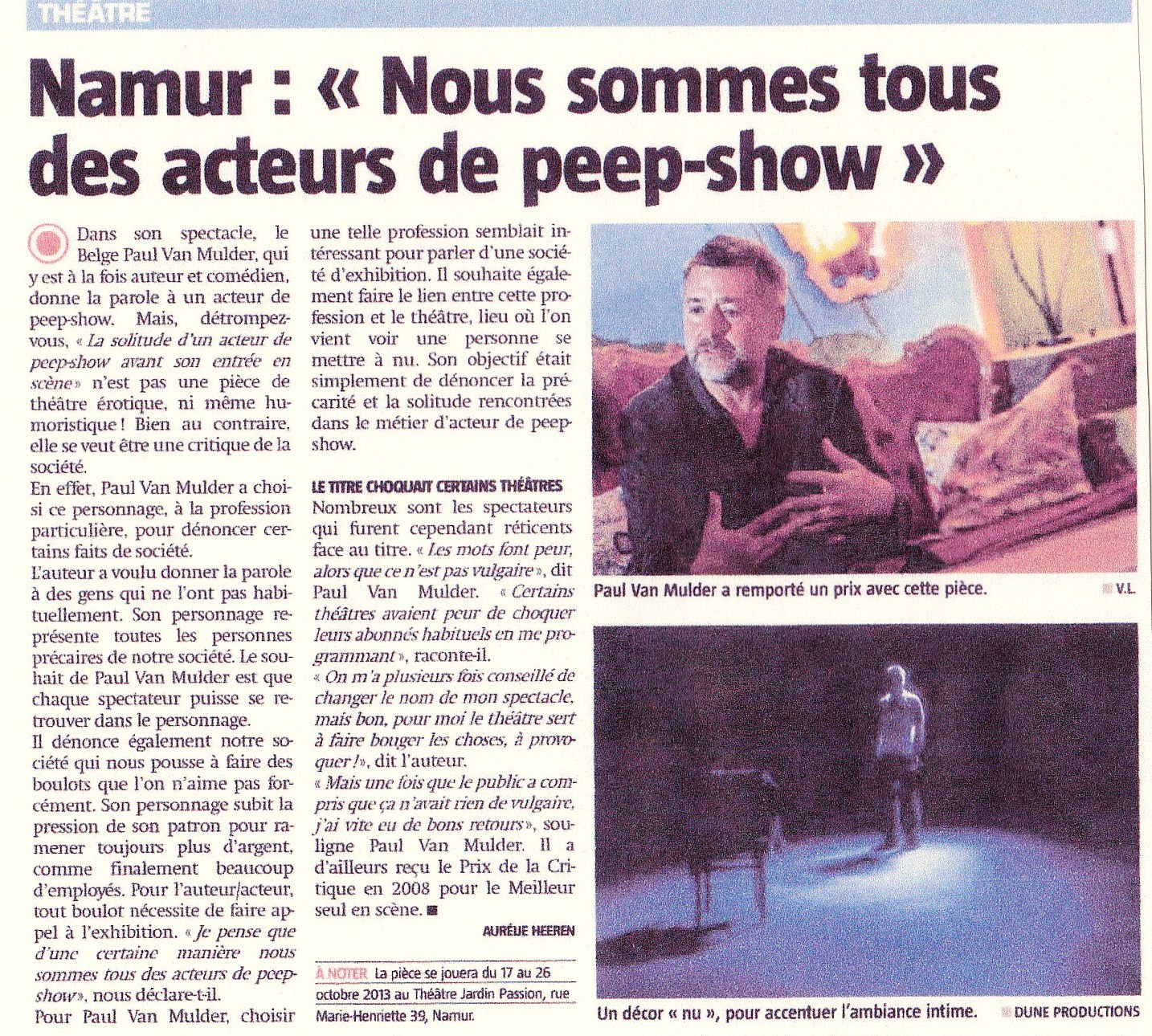 - Présentation du Théâtre – La première, radio – Voir interview