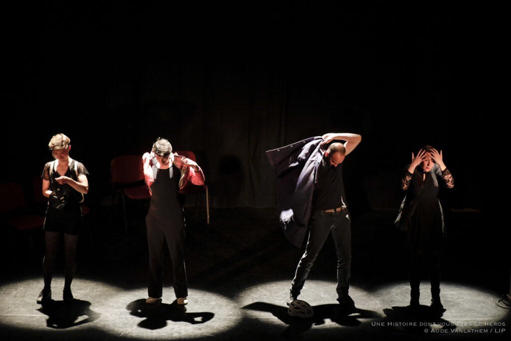 Quatre comédiens et vous, public. En début de représentation, les improvisateurs viendront à votre rencontre afin que vous soyez leur inspiration pour l’histoire qui s’écrira ce soir-là. Votre prénom, vos passions, l’un ou l’autre accessoire, vos peurs et vos angoisses, vos rêves et vos envies, votre manière de marcher, de rire ou de parler ; tout ce qui fait de vous un être unique, les improvisateurs s’en revêtiront pour créer et incarner leurs personnages.